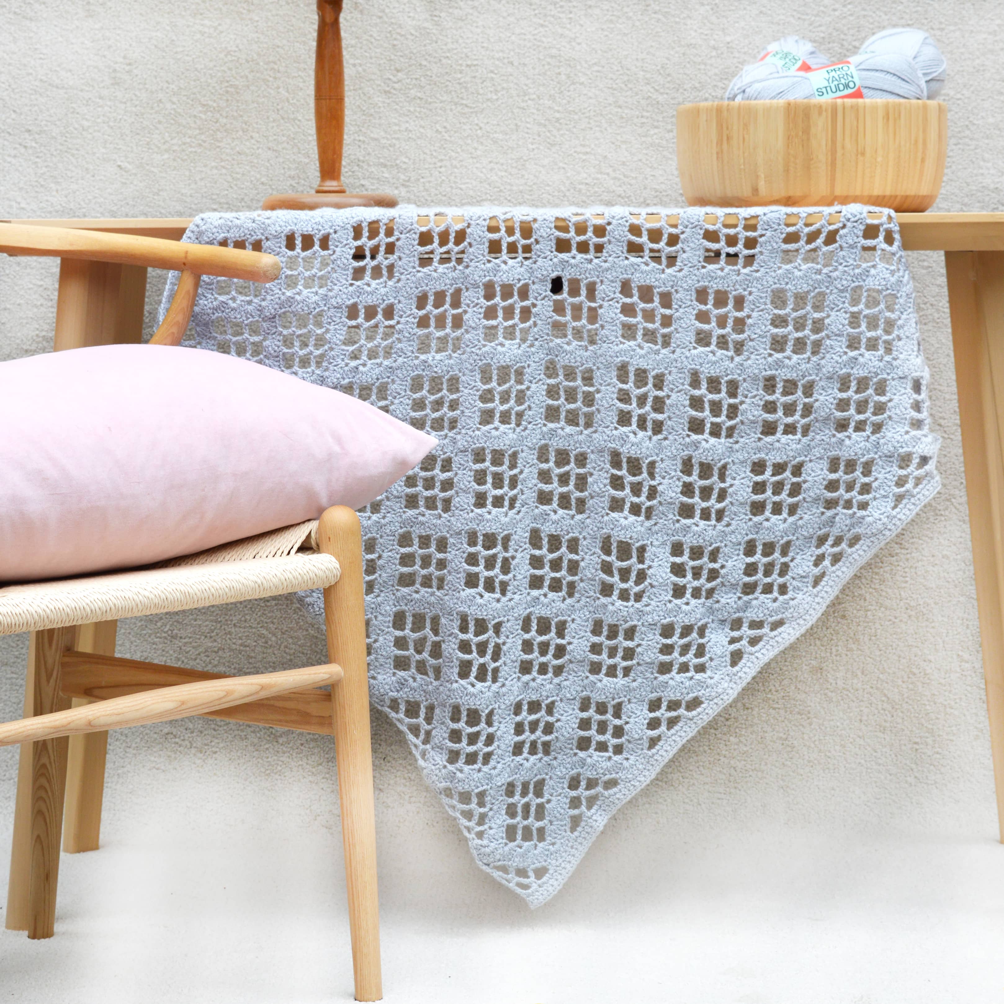 The blanket is great for someone with crochet experience and wants to try a new lace pattern. The blanket uses just a few basic stitches including the treble stitch and the chain stitch. Using just one strand of this thick DK yarn and with a bigger 4.5mm crochet hook this blanket crochets up really quickly. A lovely pretty blanket and a real value for money project.