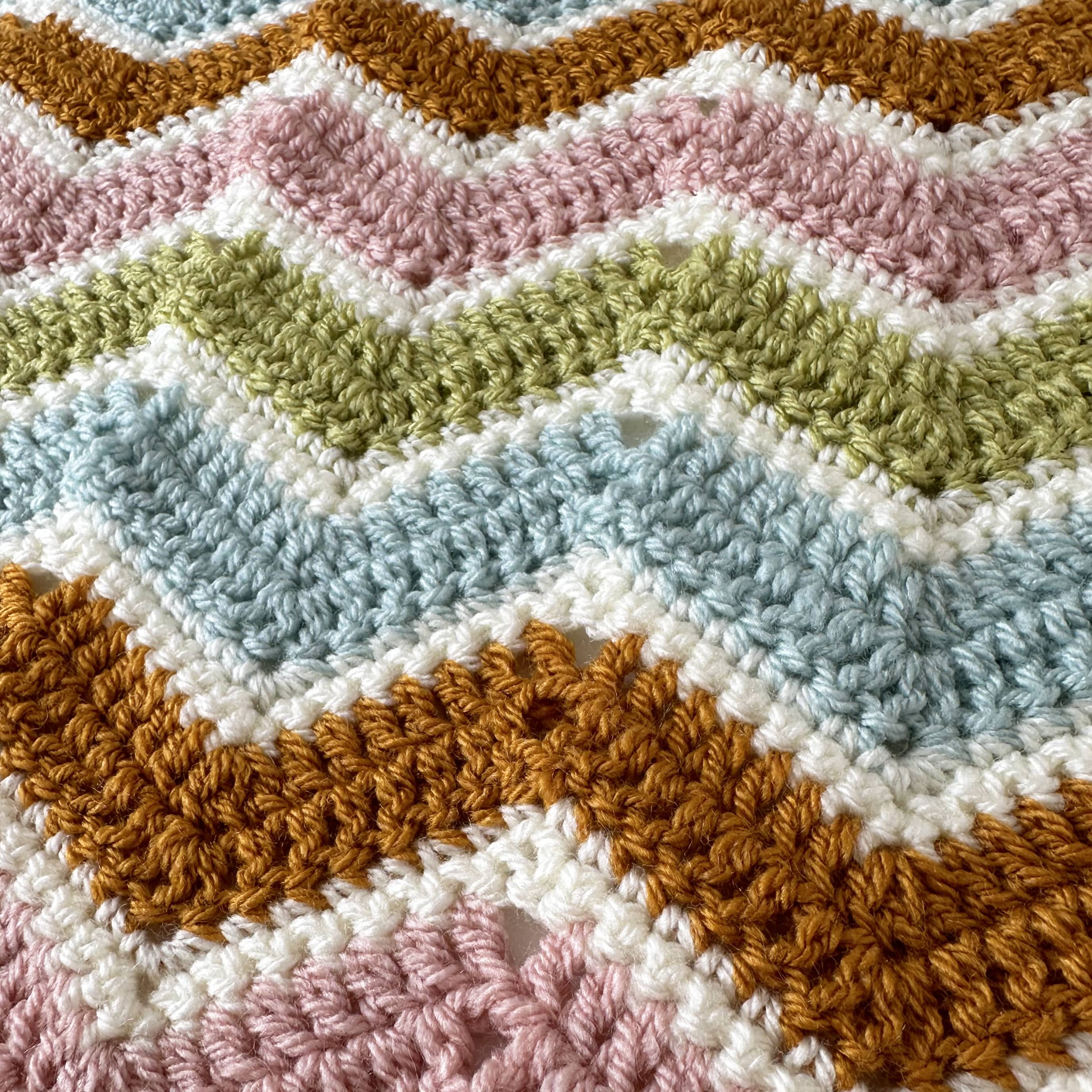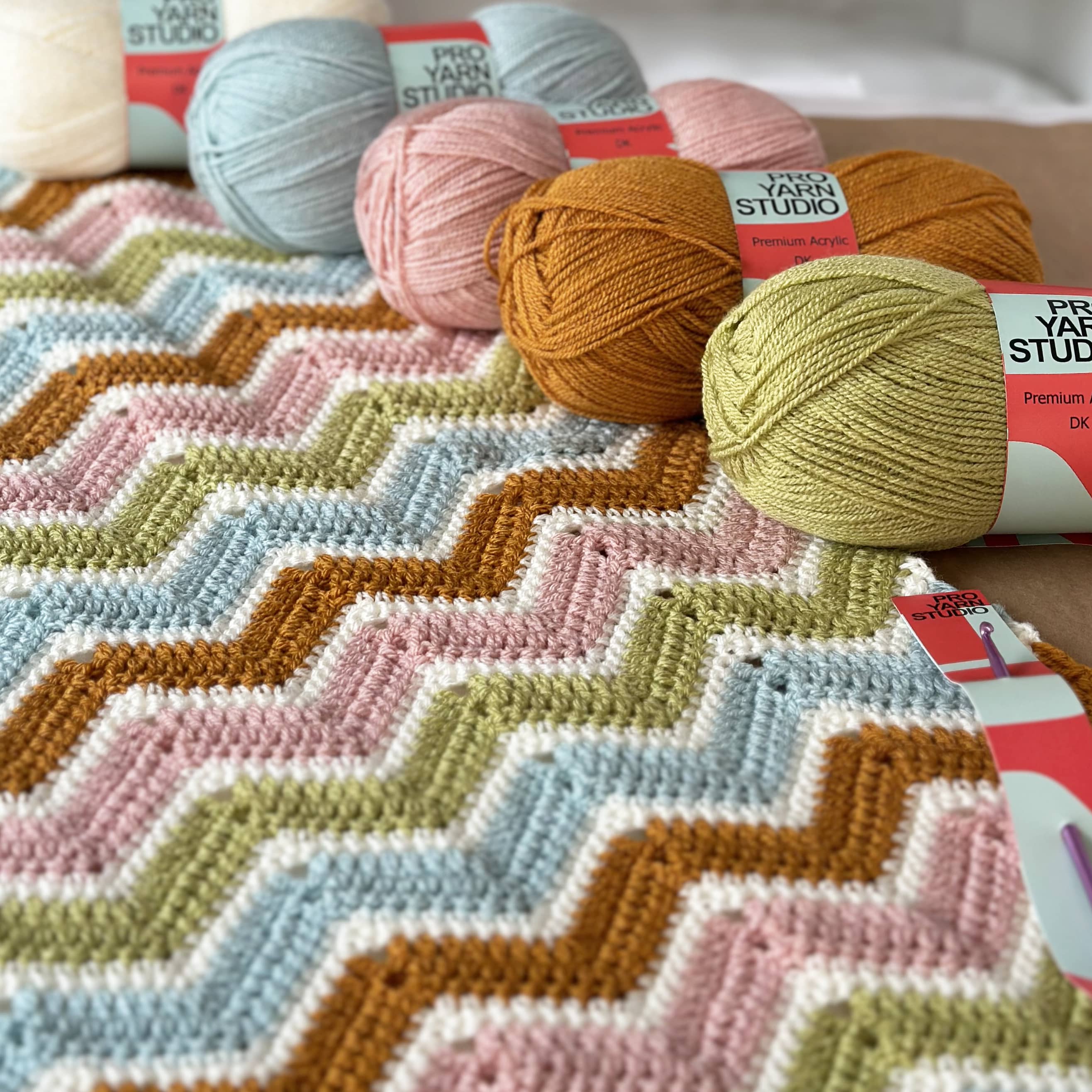 This Stripe ZigZag Crochet Blanket Kit is perfect for beginner crocheters! With an easy to crochet zigzag stripe pattern. Let this kit help you to learn how to crochet zigzags and take your crochet to the next level with this cosy blanket.